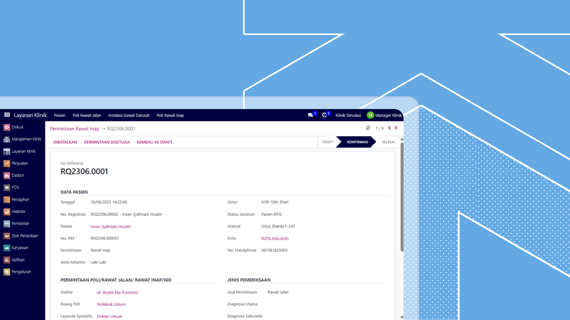 Registrasi pasien lebih cepat dengan nomor rekam medis otomatis, serta penyimpanan riwayat medis yang aman dan mudah diakses.