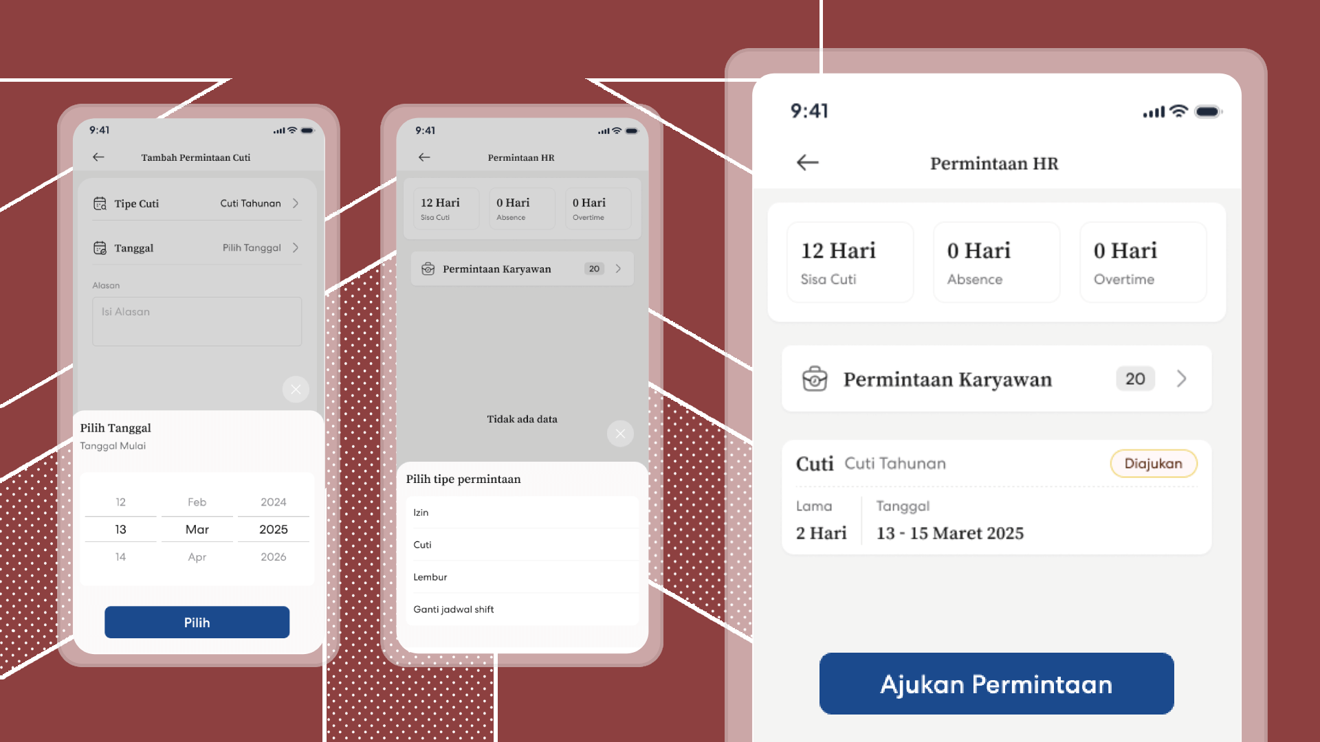 Sistem mendukung manajemen cuti, izin, lembur, serta penggantian shift, sehingga HR dapat bekerja lebih efektif.
